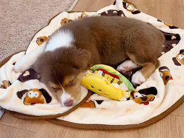 Our calming blanket comes in Small, Medium, and Large, perfect for puppies, adult dogs, and senior pets of all breeds.